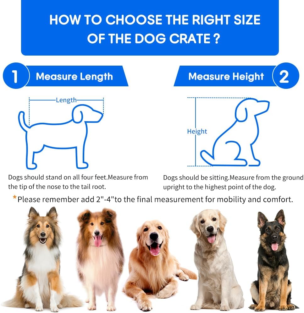 - ๐[Upgraded Door Lock and Seat Cushion] This dog crate features an upgraded lock plate for aesthetics and ease of use. The door lock securely secures the door, ensuring your dog's safety and minimizing the noise of the door locking. The large dog crate comes with a matching soft seat cushion that's comfortable and removable, providing a comfortable and cozy experience for your dog.