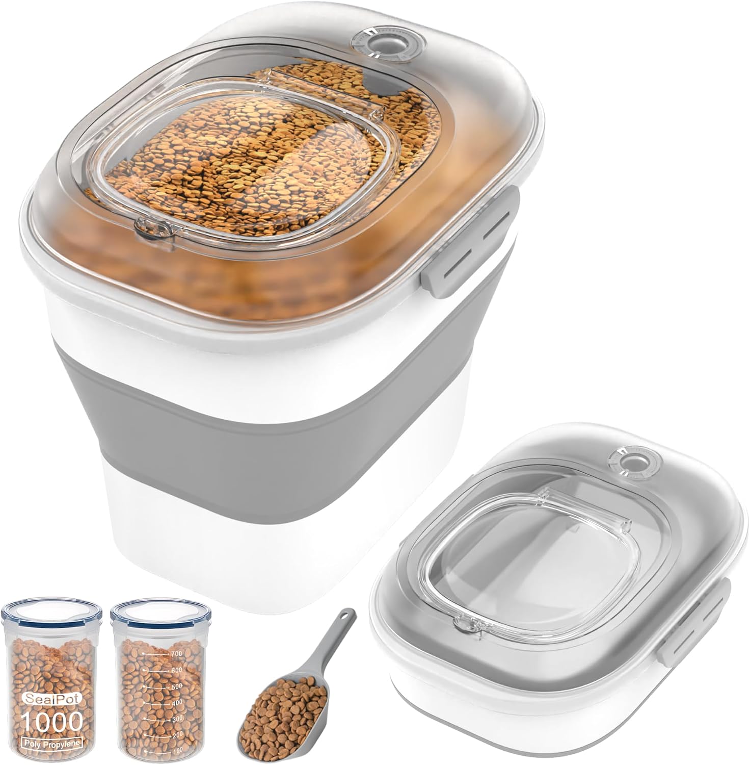 - Transparent Lid: Upgrade design! Our cat food container with transparent lid allowsyou to directly see the remaining quantity of the pet food. Make sure you always knowwhat's left!