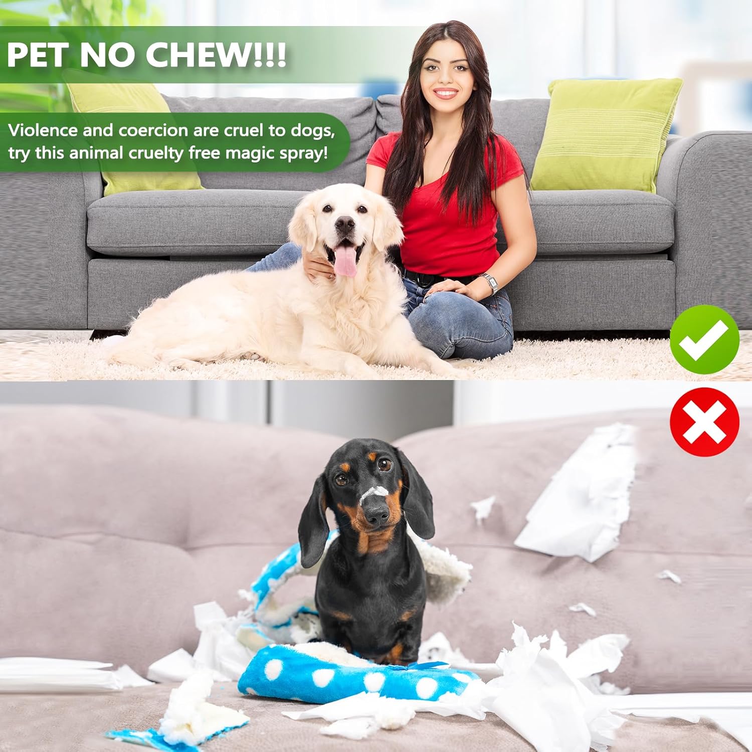 - 【Preserve Furniture】Dogs have so much energy that couches, carpets, cords, shoes, plants, and trash cans can become "battlegrounds"! Simply spray the dog deterrent on the surface of the item, dogs will immediately lose interest, No more destruction!
