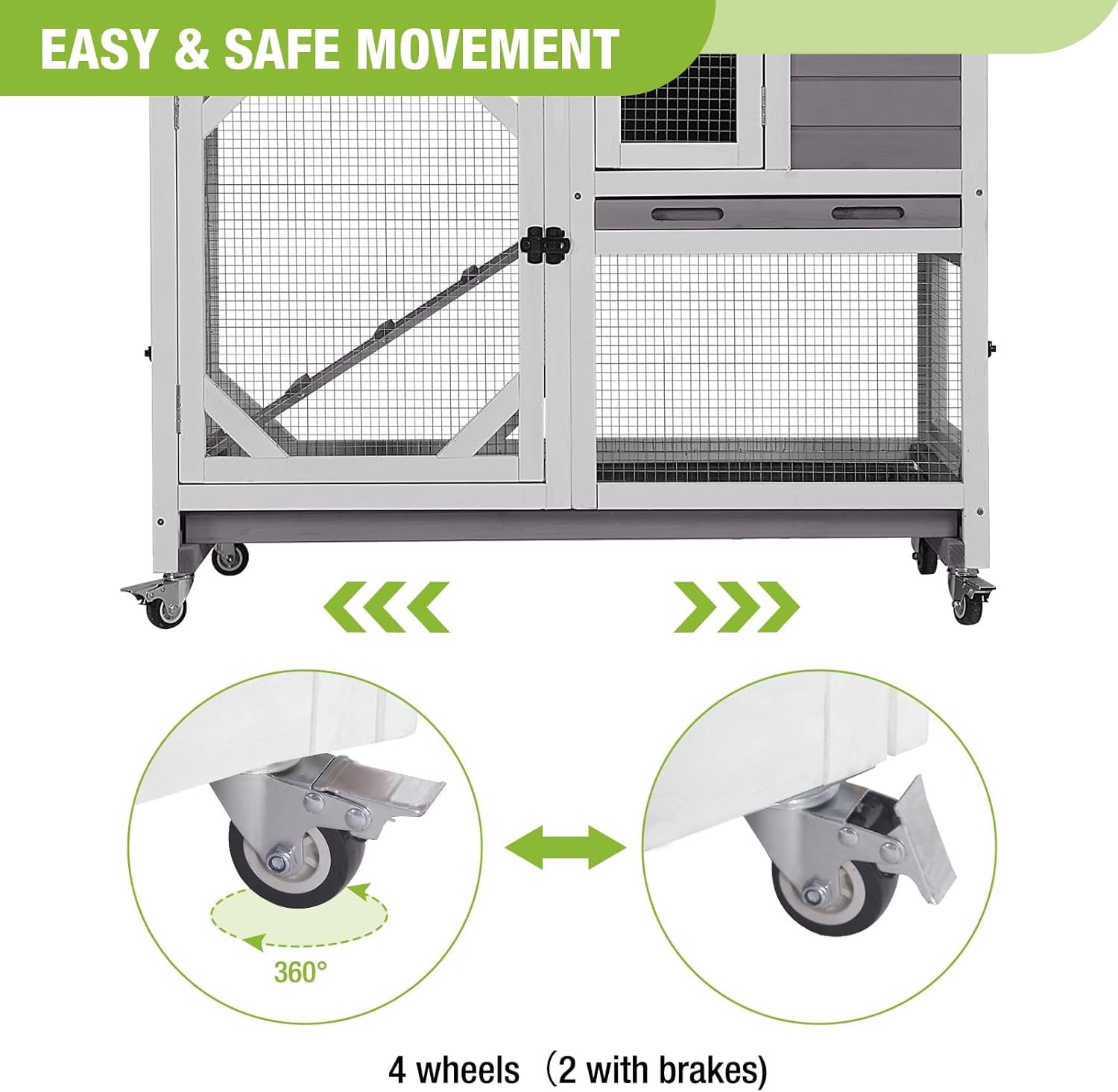 GUTINNEEN Rabbit Hutch Indoor Outdoor 2 Story Bunny House on Wheels Wood Rabbit Cage with 2 Pull Out Trays Guinea Pig Cage (Gray)