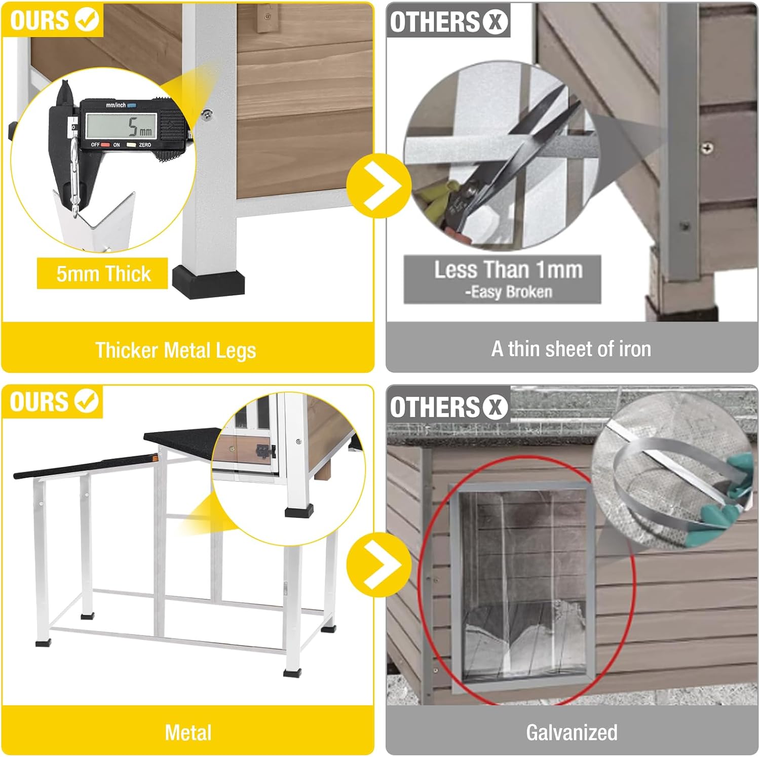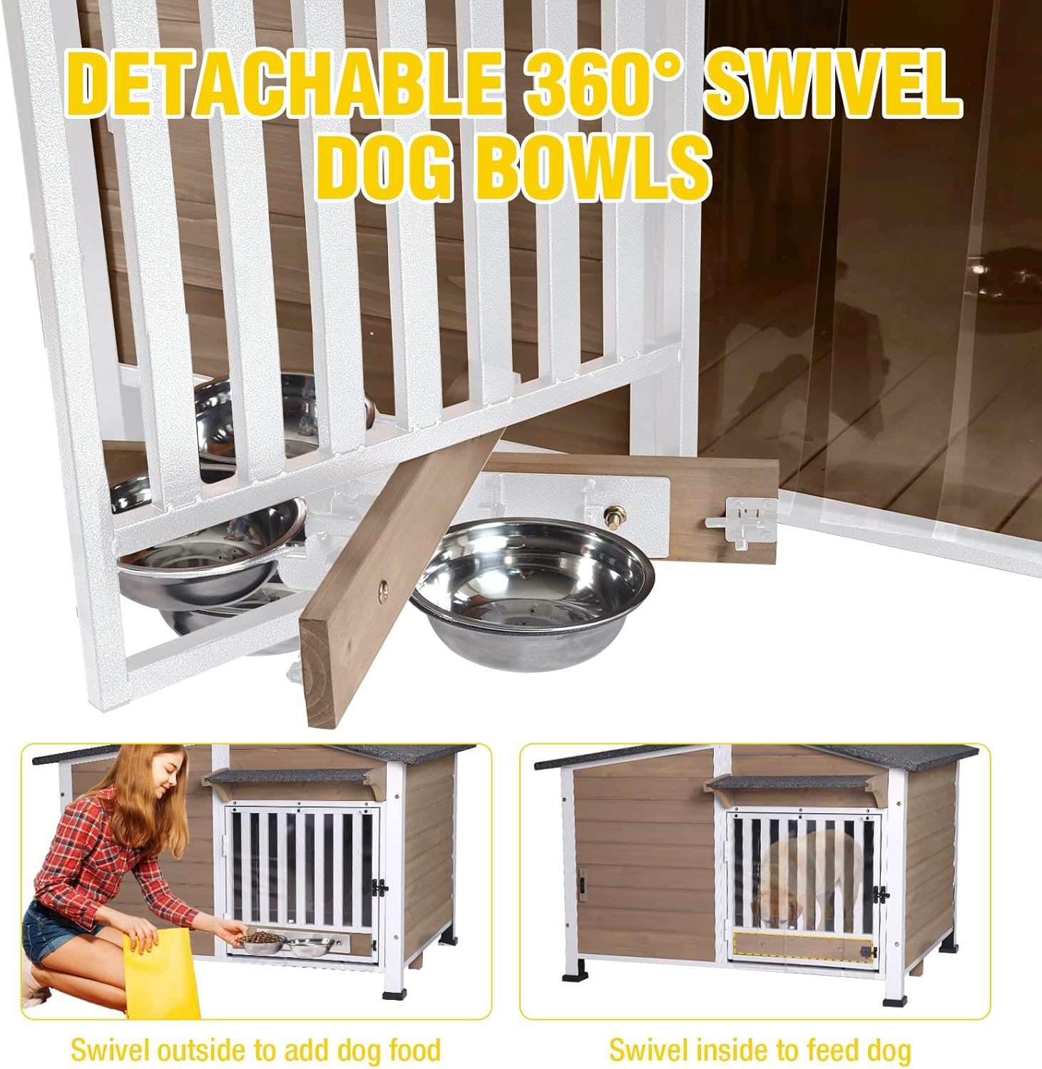 - 【Waterproof & Easy-Clean Hinged Roof】The roof features smooth-opening hinges and a waterproof coating, making cleaning effortless while keeping your dog dry in all weather conditions