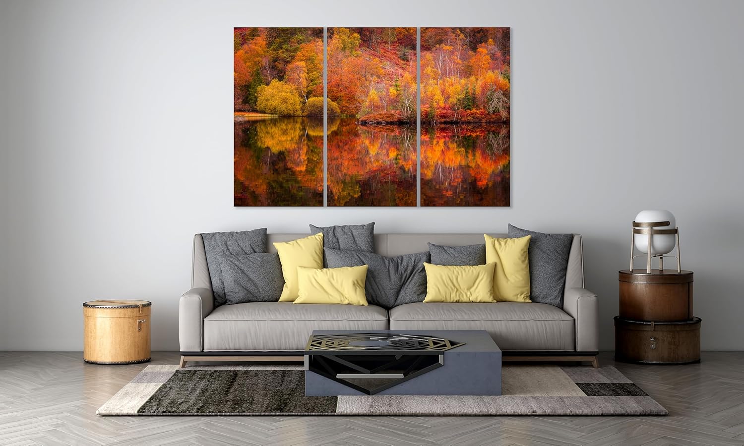 Nature Wall Art Prints - Ocean Forest Mountain Lake Canvas Landscapes - Small to Extra Large Living Room Bedroom Kitchen Bathroom Décor (Autumn Forest with Lake, 35L" x 53W" - 3 Panels)