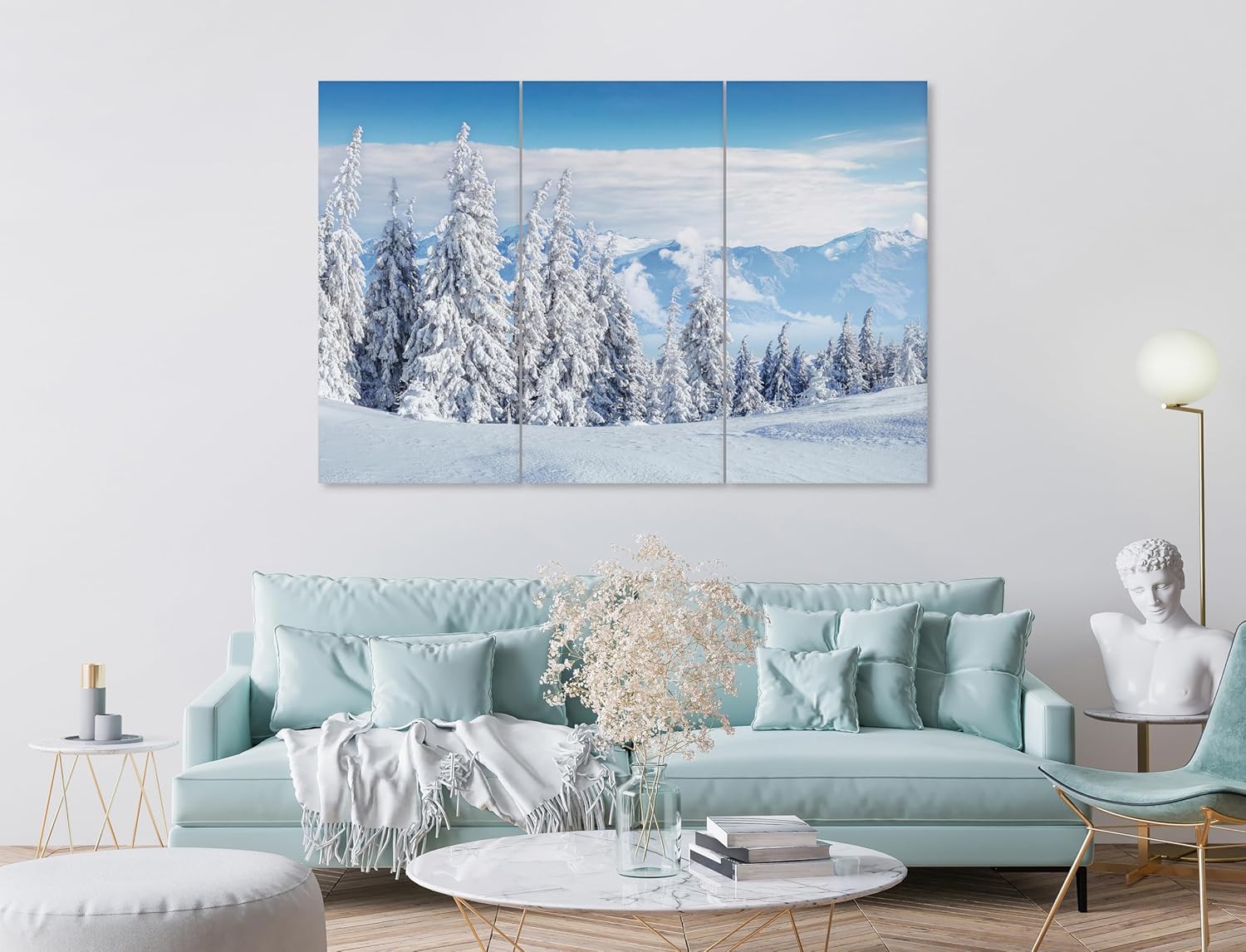 Nature Wall Art Prints - Ocean Forest Mountain Lake Canvas Landscapes - Small to Extra Large Living Room Bedroom Kitchen Bathroom Décor (Snow Covered Trees on Mountain, 35L" x 53W" - 3 Panels)