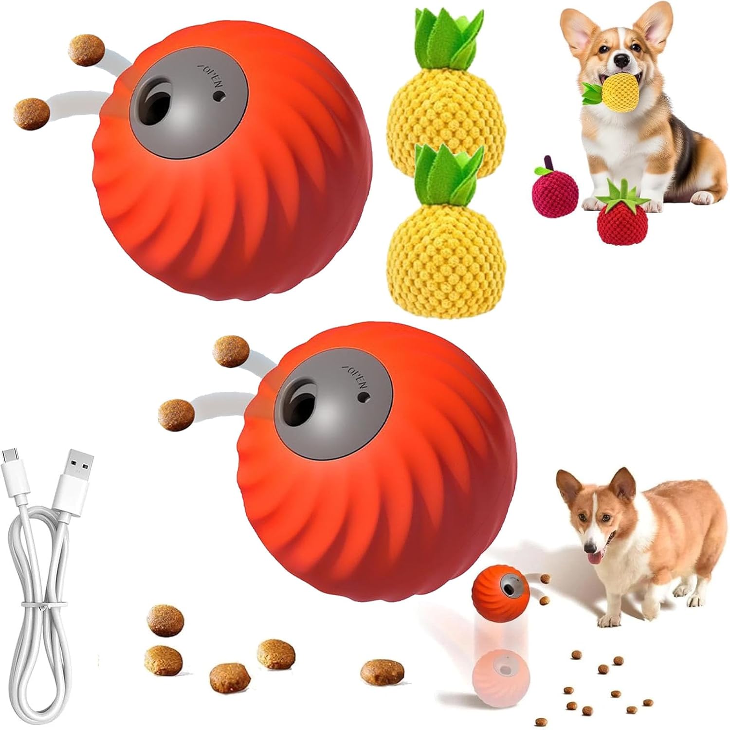 Zoomie Buddy 2.0, Zoomie Buddy for Dogs, 2 in 1 Smart Touch Interactive Dog Balls & Pet Feeder, 2.83" Diameter, Suitable for Small/Medium Dogs, with Fruit Plush Cover (2*Orange, Pineapple)